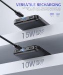 - Power bank is equipped with USB-C and Micro USB input ports, which can fully recharge itself in just 4-5 hours at 5V 2.0A.(Note: Type-C port can only input, does not support output) . Its portable design allows you to stay connected without being tethered to a wall socket, providing convenience and freedom wherever you go.